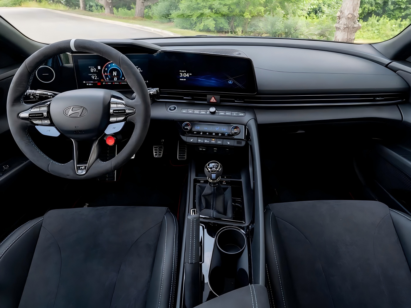 Pokiaľ ide o interiér, celkové usporiadanie nového automobilu sa príliš nelíši od rozvrhu Elantra n, ale je vybavené volantom „n výkon“ Alcantara so značkou polohy 12 hodín. Medzitým je predný riadok vybavený modrými bezpečnostnými pásmi, parapety dverí sú vybavené n -výkonnými kovovými parapetmi a vozidlo obsahuje aj výkonné podlahové rohože, ako aj veľké množstvo vnútorných súprav Alcantara. Napríklad páka manuálnej parkovacej brzdy, páka radenia prevodovky a lakťová opierka lakťovej kratky sú zabalené v Alcantare. Nakoniec na svetlách s kľučkou dverí je logo „TCR verzie“, ktoré je plné emocionálnej príťažlivosti.